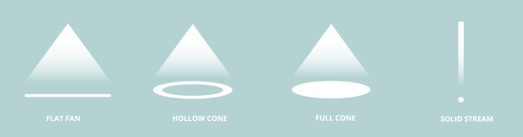 Hydraulische Sprühdüsen lassen sich in vier verschiedene Sprühmuster unterteilen: