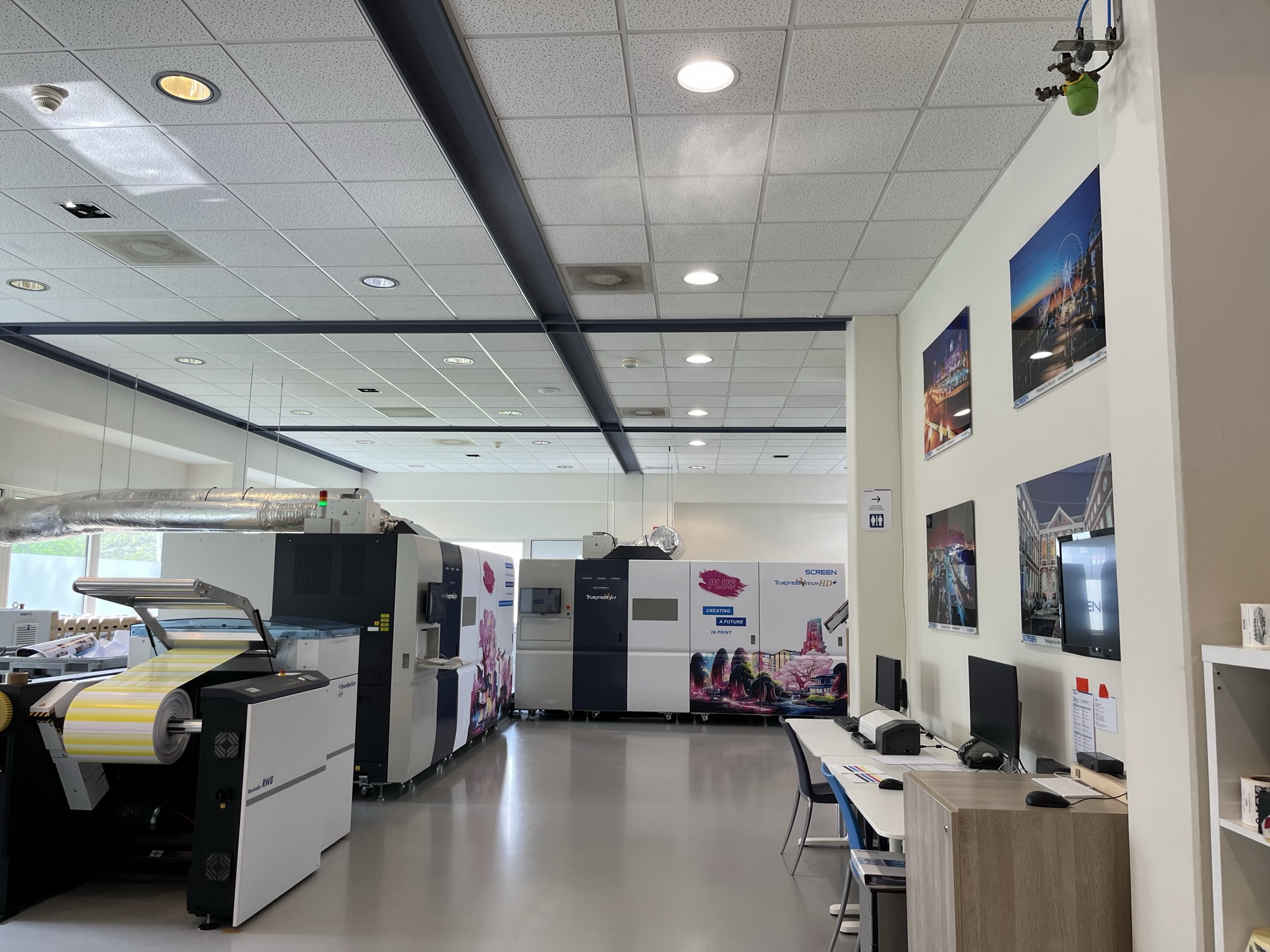Das „Trockennebel”-Befeuchtungssystem von Ikeuchi sorgt für eine präzise Befeuchtung direkt um die Maschinen herum, ohne diese zu benetzen – ideal für die Aufrechterhaltung stabiler Bedingungen in Siebdruckumgebungen.