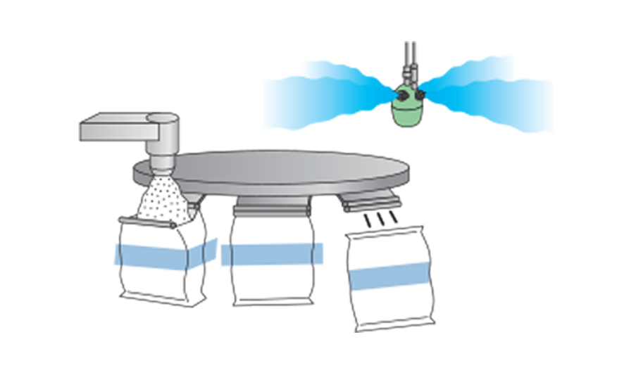 AKIMist® ist aufgrund seiner extrem kleinen Tröpfchengröße von etwa 7,5 µm einzigartig in seiner Nichtbenetzbarkeit – ideal für sensible Umgebungen. Die winzigen Tröpfchen können auch Staub unterdrücken, was sie zu einer idealen Ergänzung für Lebensmittelverpackungsanlagen macht.