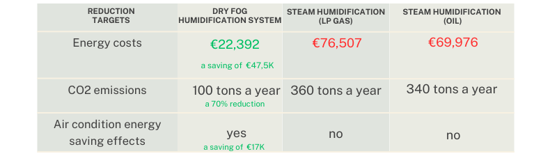 Die Umstellung von Dampfbefeuchtung auf Trockennebelbefeuchtung führt zu einer erheblichen Senkung der Energiekosten und des CO2-Ausstoßes und kann sich innerhalb von zwei Jahren amortisieren.